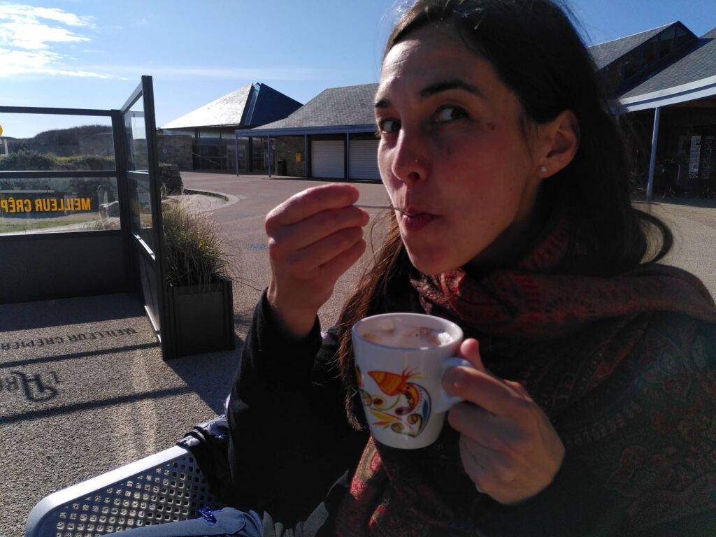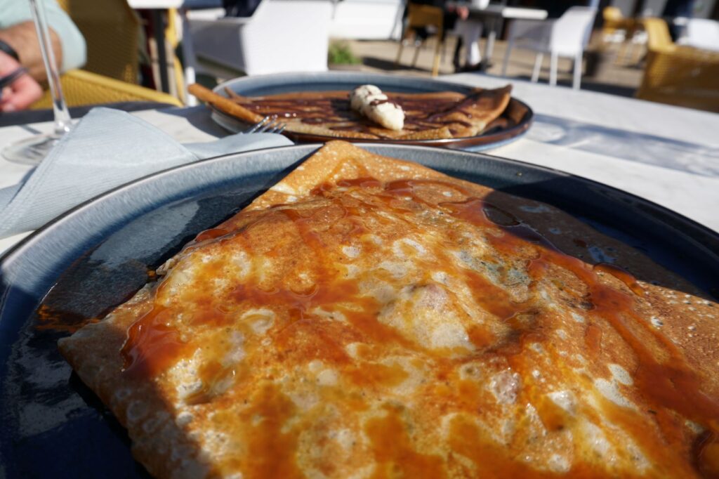 Es dauerte somit ungefähr drei Wochen bis wir das erste Mal in Frankreich zum Kafi einkehrten. Wer uns kennt, weiss, dass wir grundsätzlich gerne die lokale Gastronomie unterstützen und wir uns auf jedem Hundespaziergang die Buvette wünschen, die wie eine Fata Morgana am Horizont auftaucht. Es war bis dahin auf unserer Reise aber wirklich so, dass die meisten Lokale an den von uns besuchten Orten ab Mitte/Ende September geschlossen waren. Eventuell hat das eine oder andere Café auch hier die erste Corona-Welle nicht überstanden und so waren vielleicht deshalb noch weniger Beizen geöffnet als zu dieser Jahreszeit üblich. Zum Glück war unser Treffer an der Pointe du Raz auch noch die Crêperie des Jahres – der Besuch hat sich auf jeden Fall sehr gelohnt.