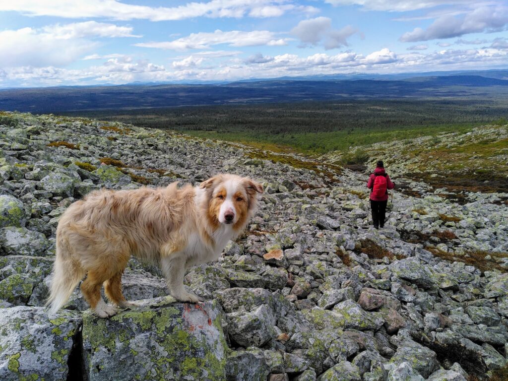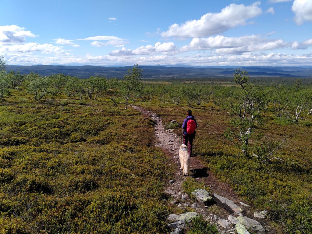 Nur unweit dieser Anlagen, auf einem kleinen Parkplatz, war es wieder still und wir präparierten unsere Rucksäcke, um erneut loszuwandern. Da sprach uns Solvejg an, eine aufgestellte Kinderärztin, die in Begleitung einer rüstigen 88-jährigen Dame gerade von einer Wanderung zurückkam. Wir staunten nicht schlecht, denn das Gelände hier ist alles andere als easy. Wir erfahren, dass die ältere Sportskanone ebenfalls sehr gerne Tennis spiele und es liebe, auf die Bälle zu hauen, trotz stark eingeschränkter Sehkraft. Am Netz stehend, lasse sie die deutlich jüngere Solvejg die Laufarbeit machen. So kommen beide auf ihre Kosten… Das Gespräch war sehr erheiternd und mit einer weiteren Kontaktnummer im Gepäck starteten wir unsere Tour. Solvejg betonte mehrfach, dass wir sie jederzeit fragen können, wenn wir etwas brauchen oder wissen wollen hier in Schweden. Wenn das mal keine Gastfreundschaft ist!