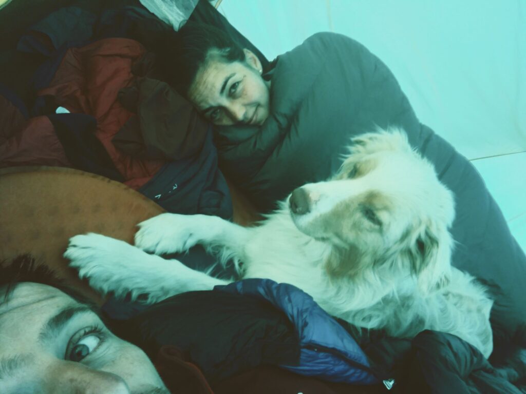 Obschon es nicht viele Kilometer waren bis zum Tagesziel, war der Weg sehr anspruchsvoll. Vor allem Mojo musste sein ganzes Geschick einsetzen, um unbeschadet über die vielen grossen Geröllbrocken zu gelangen. Irgendwann tauchte der kleine See dann aber doch noch auf und wir nutzten den Komfort der kleinen Schutzhütte, um uns bei Windstille einen Tee zu kochen.