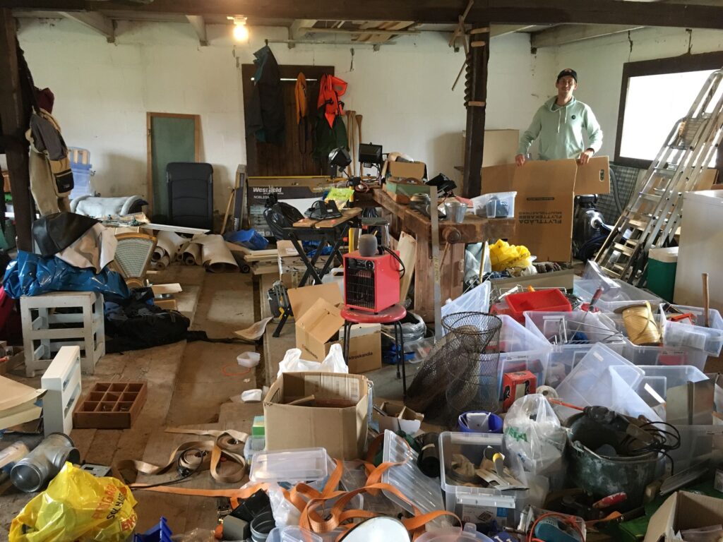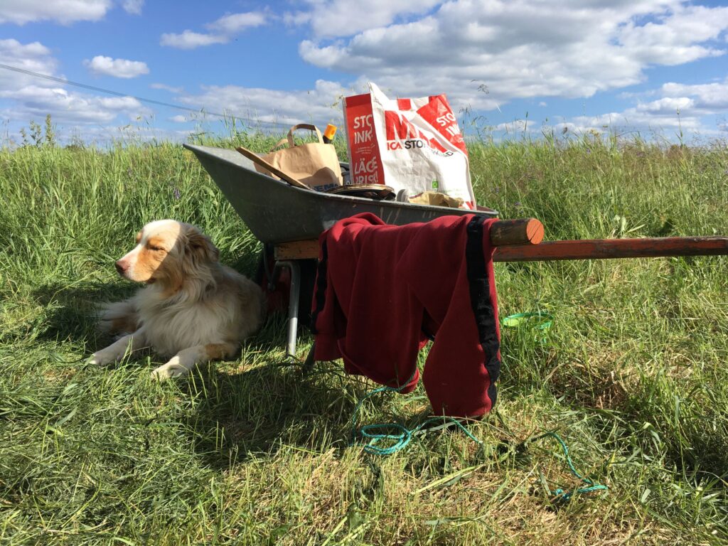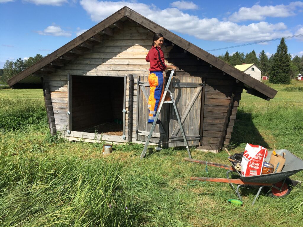 Als es kurz etwas weniger sommerlich wurde, verlagerten wir unseren Wirkunsort in den grossen Stall, in welchem ein grandioses Puff herrschte. Die Kunde von Rebis Talent, für Ruhe und Ordnung zu sorgen, hat sich bis nach Nordschweden verbreitet und so orchestrierte sie mit klarer Vision die wunderbare Verwandlung des Chaos‘ in eine sauber aufgeräumte Werkstatt. Die Auftraggeber waren von der Gründlichkeit und Effizienz derart erfreut, dass wir noch an anderen Orten aufräumen durften. Wenn wir auswandern würden, dann stünde auf jeden Fall schon die Geschäftsidee! Nebenbei kam während dem Aufräumen nach und nach die geheime Passion des Hausherrn zum Vorschein: Er hat eine Schwäche für Handsägen, Spann-Sets und Schrauben-Bits T20…