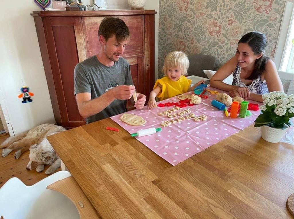 Der kleine Algot war noch nicht so gesprächig, dafür aber seine ältere Schwester Vilma umso mehr. Sie beurteilte unser Wirken auf der Farm fachfrauisch, wobei Maria bei unseren Gesprächen mit Vilma als feinfühlige Dolmetscherin glänzte. Der Sprachaustausch funktionierte prima. So lernten wir beispielsweise, dass der im Hause wohnhafte T-Rex Zahnseide benützt. Umgekehrt lobt der kleine Blondschopf jetzt alle Hunde und Plüschtiere mit einem akzentfreien „guuuet“, wenn sie etwas apportieren. Mit Vilma konnten wir auch testen, ob unser Schwedisch verstanden wird. Bei einem „vad säger du?“ als Antwort mussten wir nochmals über die Bücher…