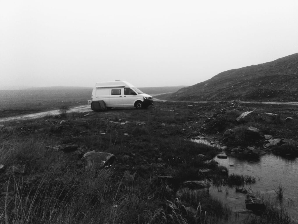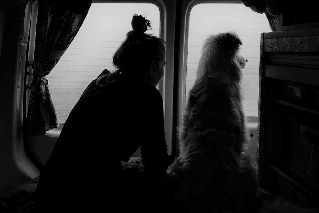 Einer der Tipps, den wir von den freundlichen Parkarbeitern auf Senja erhalten hatten, war der Besuch der Lyngenalpen, östlich der Stadt Tromsø. Dieses Gebirge ist touristisch kaum erschlossen, bietet aber gute Wandermöglichkeiten. Wir näherten uns dem Gebiet leider in sehr ungünstigem Wetter, entschlossen uns deswegen zur Weiterfahrt, machten uns aber eine geistige Notiz für die nächste Visite. Auf der gegenüberliegenden Seite fuhren wir stattdessen dem Lyngenfjord entlag und spähten rüber zu den Gebirgsformationen, welche wir jedoch nur erahnen konnten. Zäh hing der Nebel an ihnen und ein intensiver Nieselregen trübte die Sicht durch die Autoscheiben ebenfalls. Unterwegs nach Alta, dem Hauptort der Norwegischen Finnmark, stoppten wir schon am Nachmittag auf einem kleinen Pass und richteten uns ein. Es war einer dieser Tage, die man im Camperleben ab und zu einzieht: no fun! Anstatt bei quasi null Sicht der Küste weiter zu folgen, bevorzugten wir die Option, unser Büro mitten im „Gjätt“ aufzustellen und es uns auf dem Bett und bei laufender Standheizung gemütlich zu machen. Auf einmal waren sie da: Rentiere. Immer wieder tauchten sie aus dem Nebel auf und näherten sich unserem Gefährt ohne die geringste Scheu. Mojo war fasziniert und gemeinsam betrachteten wir die Tiere durch die beschlagenen Scheiben.