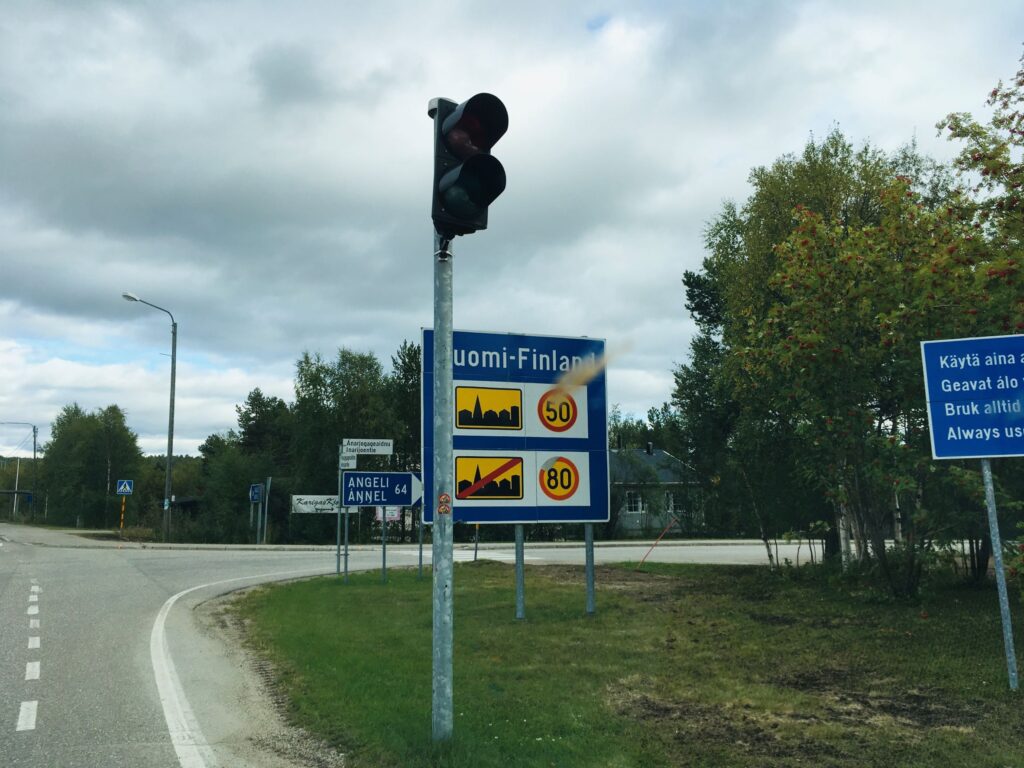 Nach Mojos Misstritt beschlich uns ein mulmiges Gefühl. Die Art, wie er sein Bein schonte, kam uns sehr bekannt vor. Wir entschlossen uns, einmal vorsorglich Richtung Süden weiterzufahren. Hier – hoch oben in Norwegen – würde es sowieso schwierig werden, einen Tierarzt zu finden. So passierten wir zuerst den Norwegischen Grenzposten: Eine kleine Runde Uniformierter Kaffee trinkend um ein Lagerfeuer. Etwas weiter der Finnische Checkpoint, menschenleer. Rebi betrat pflichtbewusst das Gebäude und scheuchte irgendwo in einer dunklen Ecke einen Zöllner auf, der sich aber überhaupt nicht für uns interessierte.