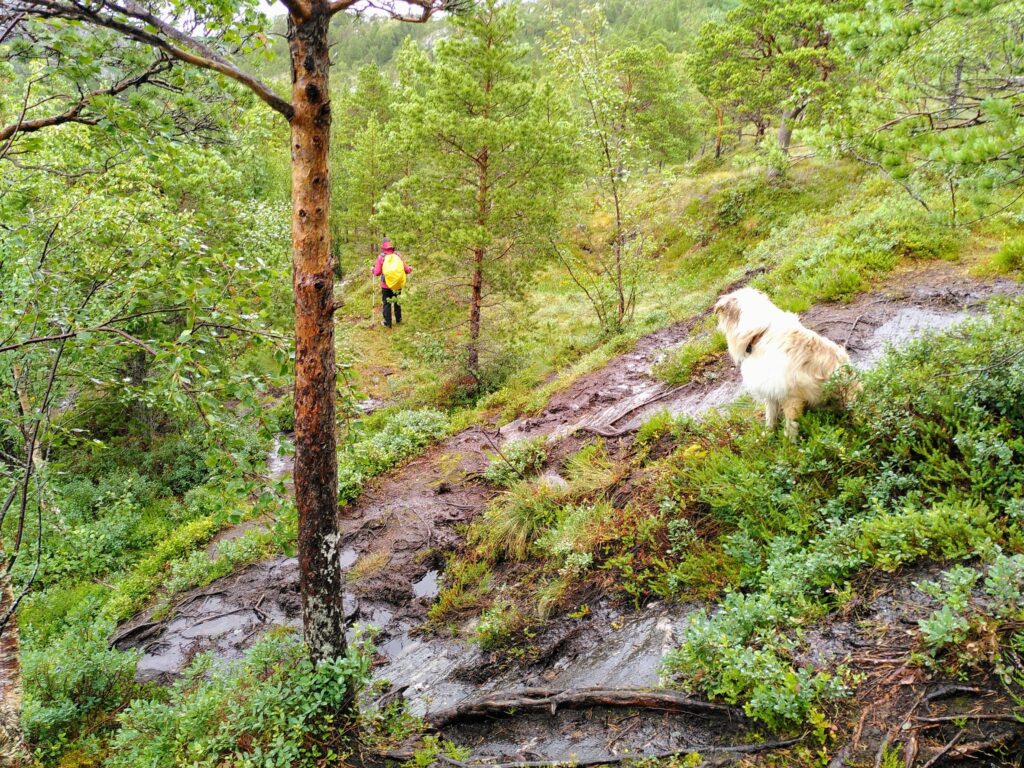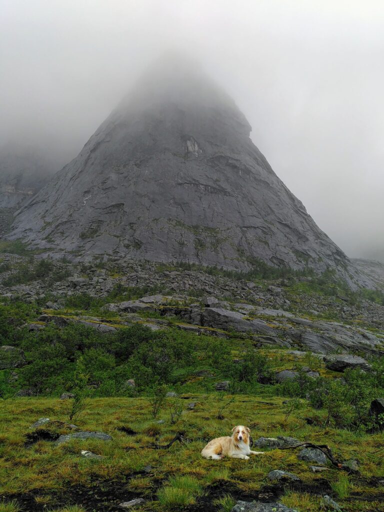 Ende Juli überquerten wir die Grenze zu Norwegen. Mojo hatte unter Aufsicht einer Tierärztin eine Entwurmungstablette gemampft und letztere musste nun 24h wirken, um legal einreisen zu dürfen. Nach einigen Kilometern in Norwegen wurden wir an einem unspektakulären Checkpoint angehalten und absolvierten einen Schnelltest. Die junge Frau im Schutzanzug erklärte, am Wochenende sei hier jeweils die Hölle los, weil alle Norweger Einkaufstouristen auf dem Rückweg bei ihr einen Test absolvieren müssten. Wir hatten uns auf eine strenge Einreisekontrolle eingestellt. Test und Kontrolle geschahen jedoch schnell (war ja auch ein Schnelltest…), unkompliziert und erst noch gratis. Mojo’s Dokumente mussten wir auch nicht vorweisen. Das komplizierteste an dieser Einreise war ganz klar das vorgängige Ausfüllen des online-Formulars.