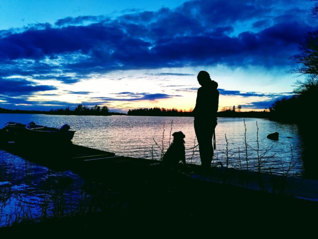 Von der Region der grossen Seen fuhren wir in die Provinz Dalarna, dessen bekannteste Region die Gegend um den Siljansee ist. Auf dem Weg dorthin stoppten wir spontan und trafen am Ufer eines Sees auf ein Pärchen mit Hund. Mojo und Mila tobten so ausgiebig, dass der geplante Spaziergang überflüssig wurde und wir stattdessen Milas Begleiter zu einem Drink aus unserer mobilen Kaffeeküche einluden.